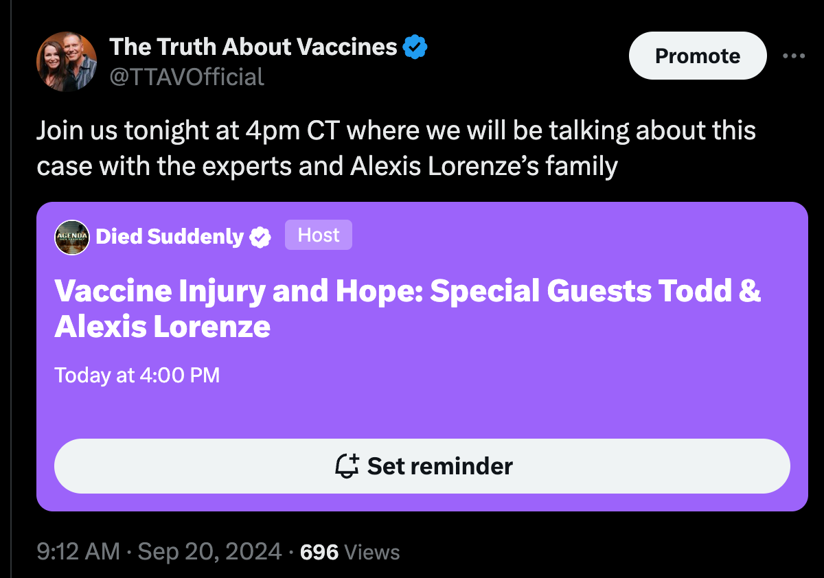 PS Please join our X Space right now where I will be joining Died Suddenly, Erin Elizabeth, Dr Sherri Tenpenny, Dr Ardis, Todd Lorenze (Alexis’ father) and a few special guests! Here is the link - please share and join us now!