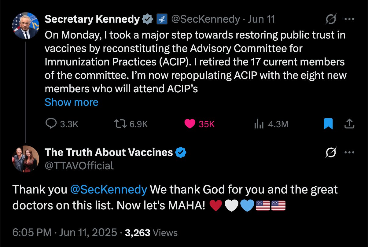 RFK Jr. Purges CDC Vaccine Committee—And Suddenly, Every Pharma-Funded ‘Doctor’ on Twitter Has the Exact Same Script