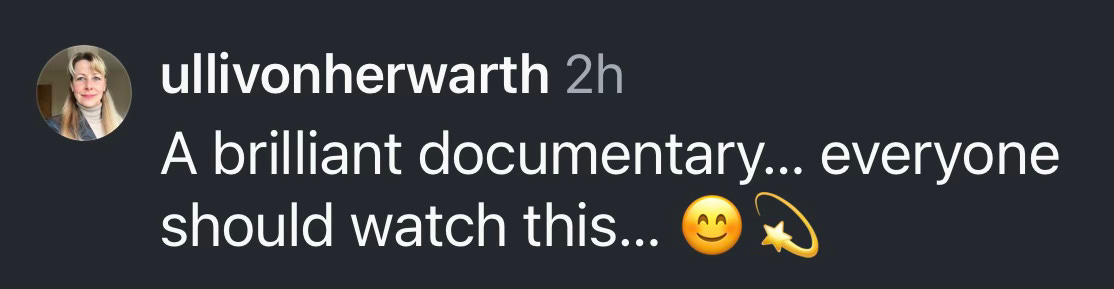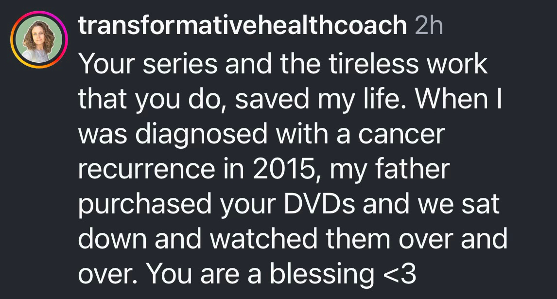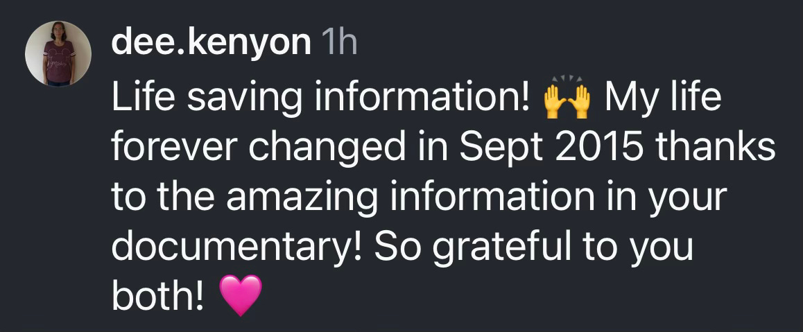 Since then we have been censored, banned, persecuted, our lives have been threatened, we had to flee America more than once to keep our family safe from harm, we have been put on a hit list called the “Disinformation Dozen” for telling the truth about COVID and vaccines (I guess that makes us 2 of the most dangerous 12 people out of 8 BILLION people on earth LOL) … but in it all, we press on, FOR YOU. And because we never gave up, we never gave in, many people who would be dead without this film are alive and even cancer free today after watching “A Global Quest.” Here are just a few comments we got on our social media platforms today:
