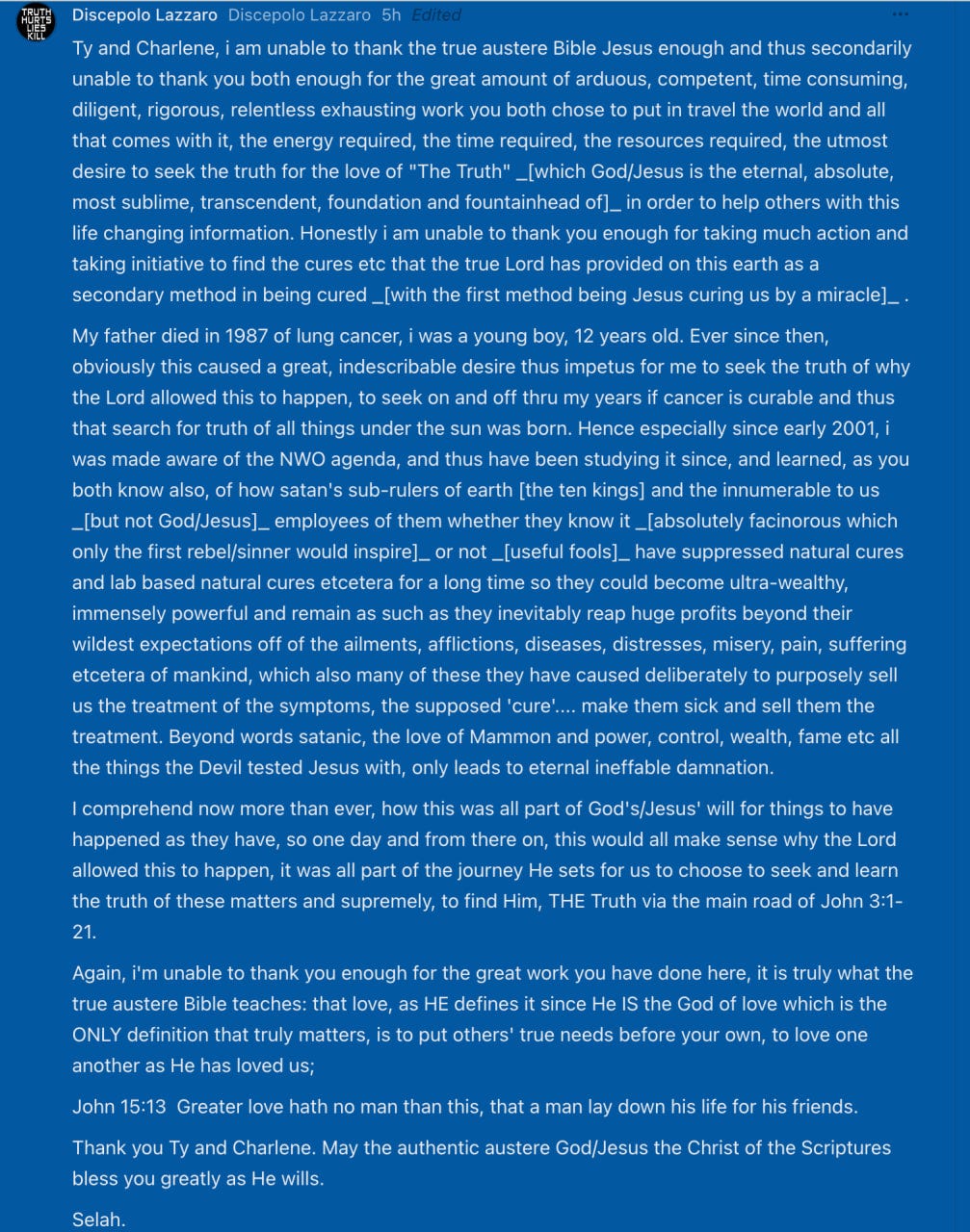 Thank you, DianeEEE and Discepolo Lazzaro, for sharing your testimony about how our films saved lives and sharing your love with us and the TTAC Community on our last TTAC Substack post. We love you both. You are why we do what we do. â„ïž