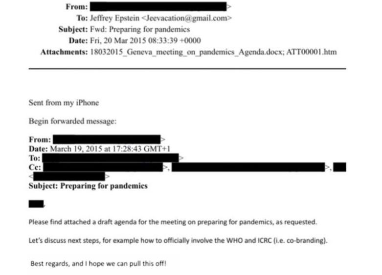 Back in 2015, Gates and Epstein exchanged emails about “preparing for pandemics” and strategies to “involve the WHO.” Gates wrote: “I hope we can pull this off.”